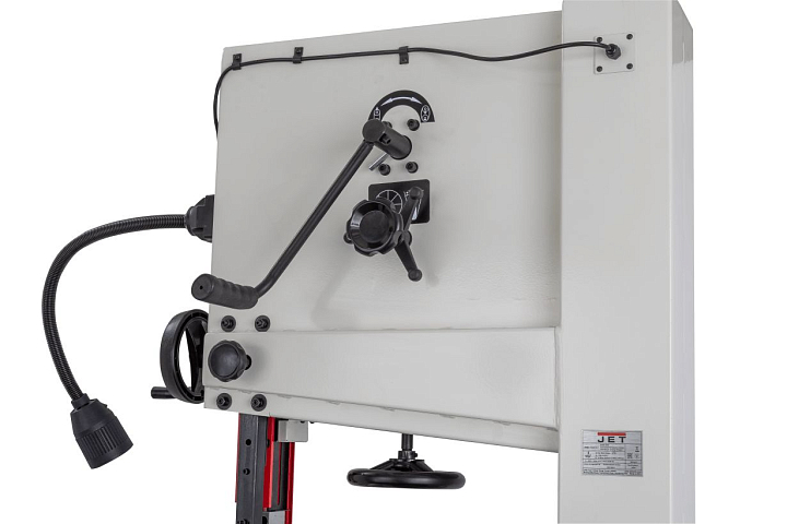 JET JWBS-18SFX-M 230 В – новинка 2025 г. Абсолютно новая ленточная пила для профессионального применения. Ее характеризуют несколько основных преимуществ. Это мощная, полностью сварная рама, большой чугунный, высокоточный рабочий стол, чугунные приводные шкивы компьютерной балансировки, возможность установки пильных полотен шириной вплоть до 32мм, система тормозов мгновенной, аварийной остановки пиления, быстрое ослабление пильного полотна для его замены. Все это очень важно тем, кому нужен универсальный, профессиональный станок. JWBS-18SFX может работать сутками напролет. Параллельный упор тоже объединяет несколько преимуществ. Направляющий профиль может быть установлен в обеих плоскостях, вертикально или горизонтально. Это позволит с комфортом работать над высокими и совсем тонкими заготовками. Высота самого профиля обеспечит комфорт при пилении больших деталей. Квадратная, толстостенная труба в основе направляющей даст нужную жесткость конструкции упора целиком.